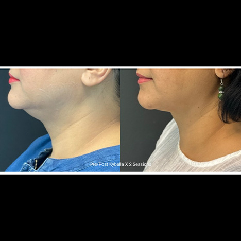 Excess fat under the chin, commonly referred to as a “double chin,” can make the jawline appear less defined. Kybella® is an injectable treatment specifically designed to target and dissolve stubborn fat under the chin. Made from deoxycholic acid, a naturally occurring substance in the body, Kybella destroys fat cells, giving you a slimmer, more contoured profile.